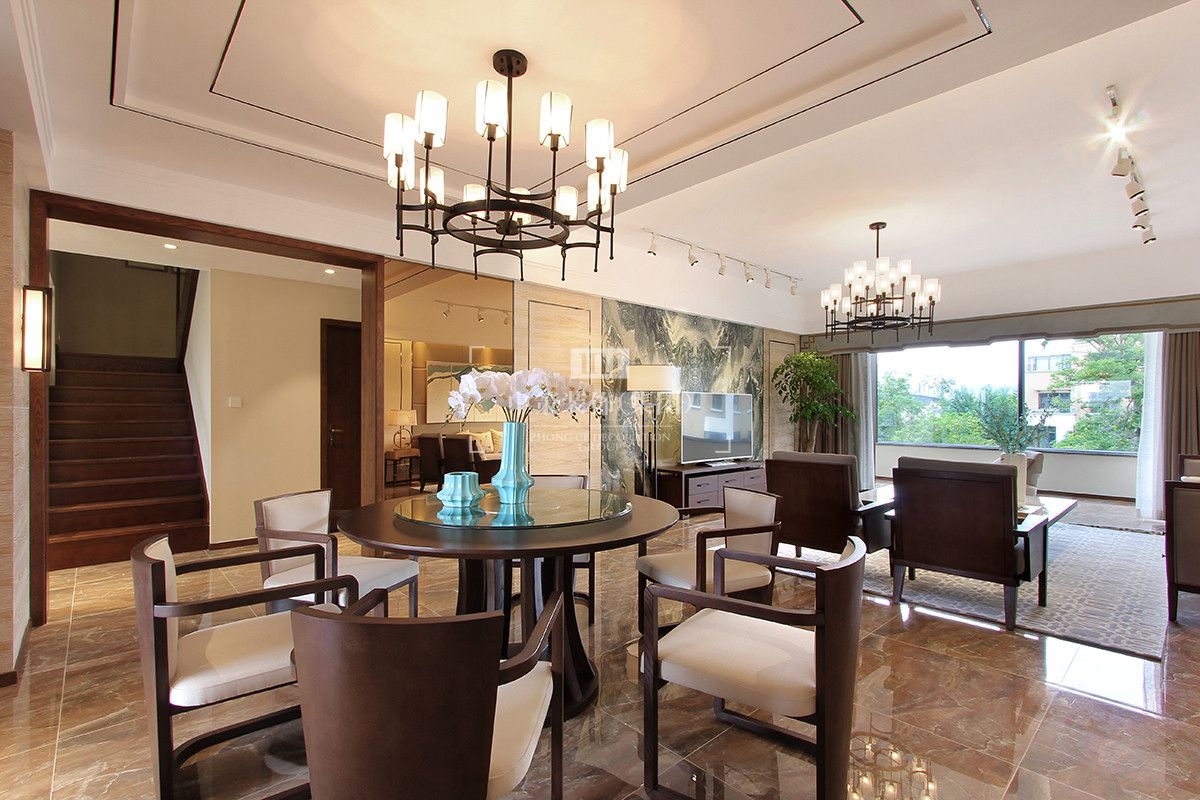 禅意小景的营造提升了空间的文化韵味,透过对外窗,揽入满室阳光与优美景致。餐厅位于客厅一旁,以开放方式规划,视觉可以穿越客厅,饱览室外自然环境,强调悠闲氛围。一丝不苟的线条让空间大气通透,色调把握与灯光照明极为协调、恰到好处。