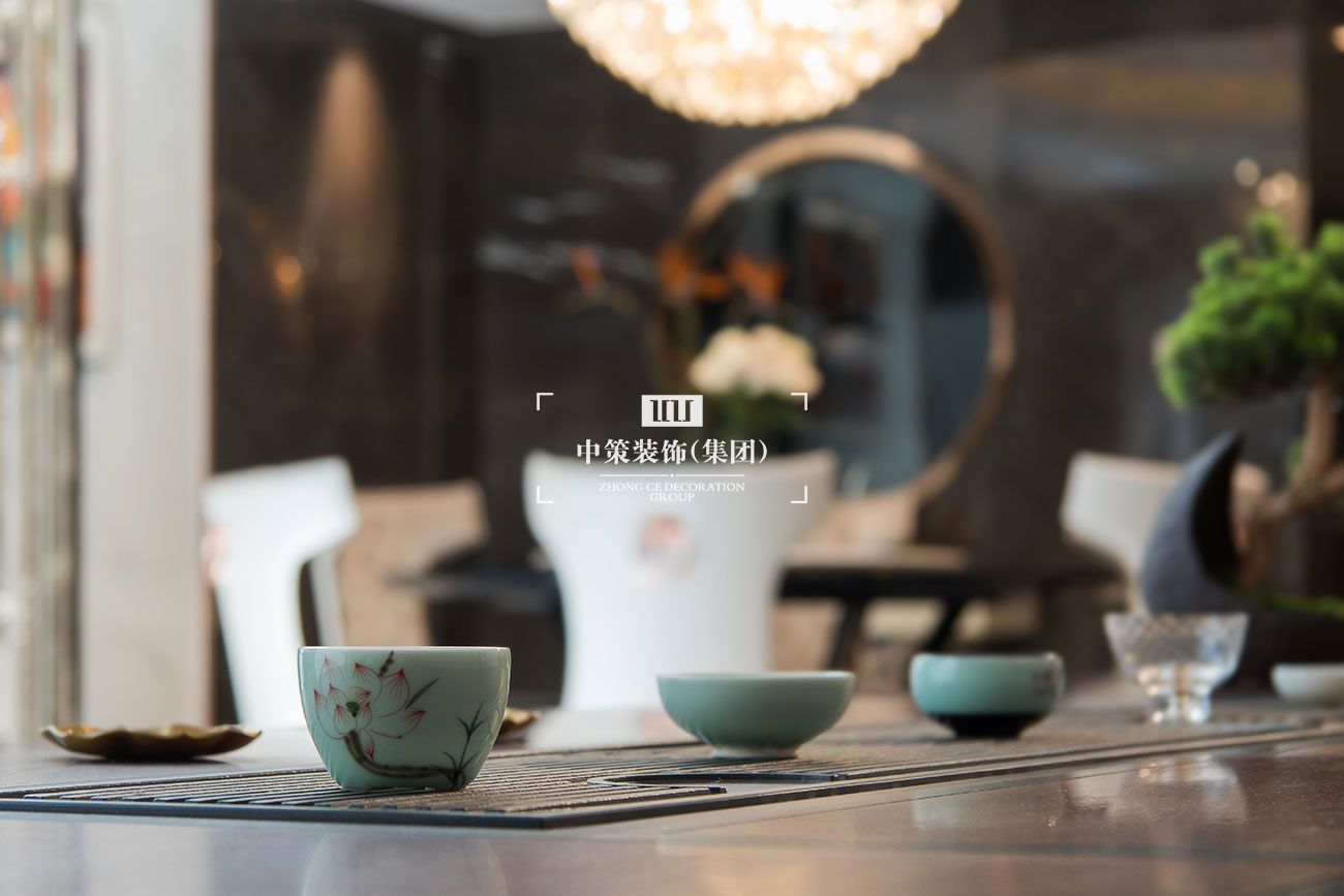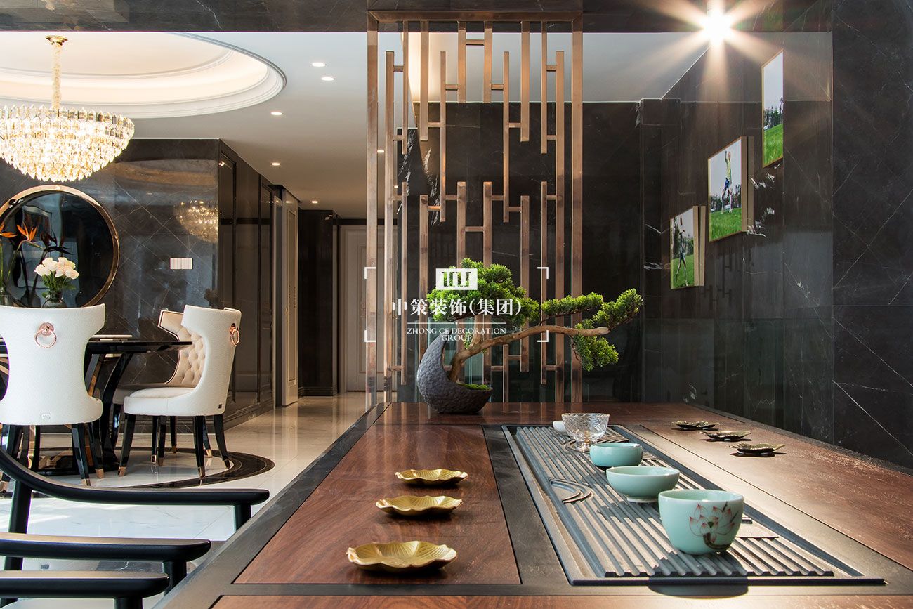 本案旨在打造奢享级豪宅。设计手法博采众家之长:现代风格的时尚、中式的意境、欧式的华丽;用恰当的比例、恰当的表现手法融合在一起,不但没有冲突反而相得益彰。